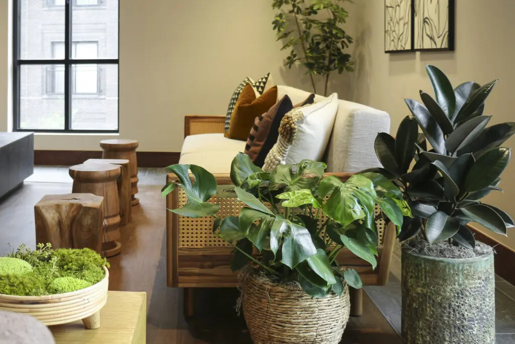 From statement trees to clusters of planters and living walls, live plants add movement and authenticity to any space. The challenge of living plants is without the right amount of light, watering schedule, and plant knowledge, even the healthiest plants can struggle. However, with proper planning and ongoing professional maintenance from trained horticulturalists, they will thrive year-round and grow beautifully.